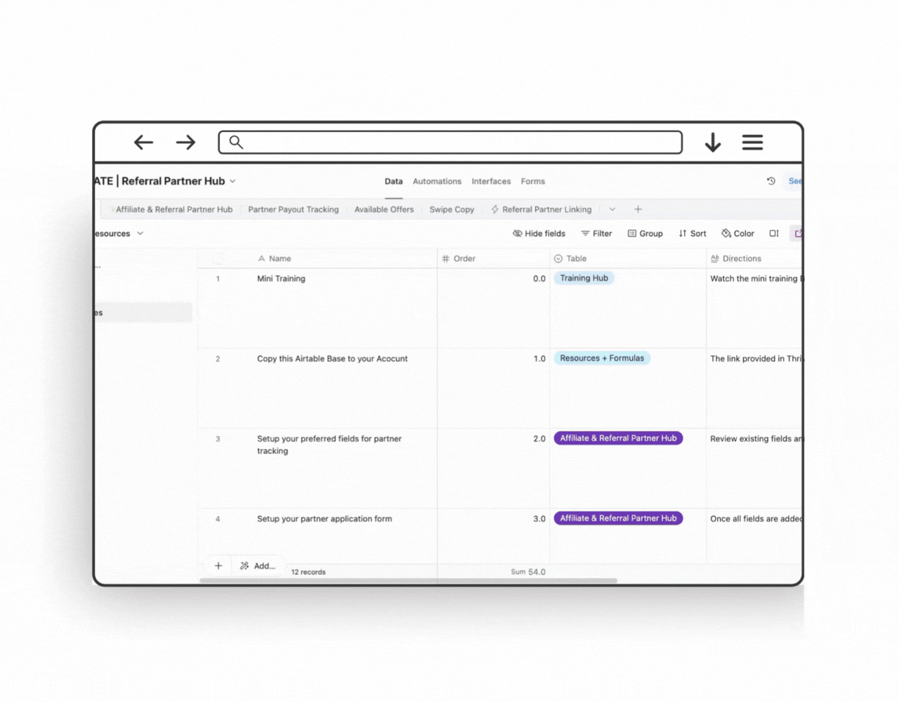 Take the guess work out of trying to figure out interfaces. This hub includes a ready to use interfaces for an internal summary of all payouts as well as an external view you can share with partners for them to track all historical payouts, any upcoming offers you may be promoting as well as swipe copy for your offers.